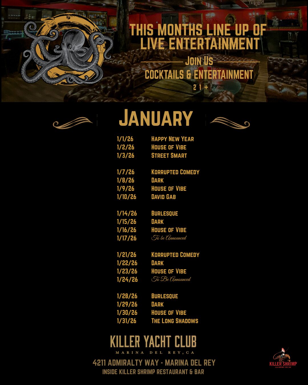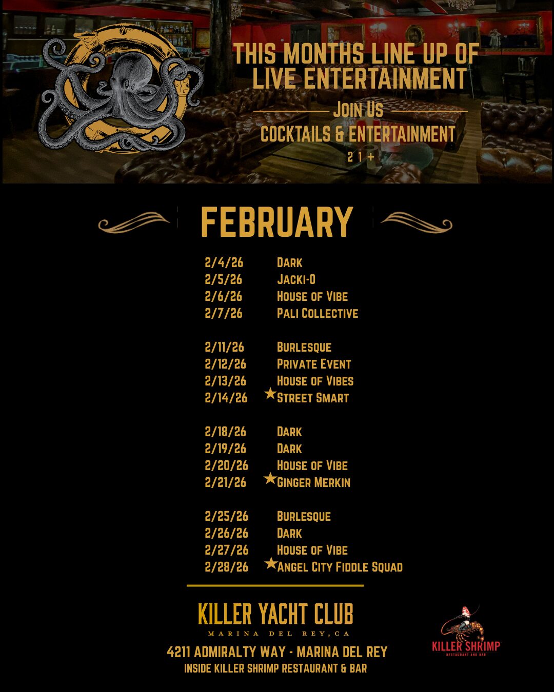 Stay up to date on our latest specials, menu items and Killer events!